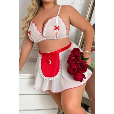 Göğüs Kısmı Açık Puantiye Desenli Fantazi Mini Büyük Beden Gecelik