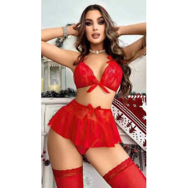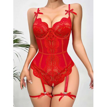 Kırmızı Dantel Fiyonklu Body Jartiyer Takım..
