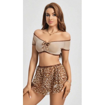 Kalın Askılı Sütyen Leopar Desen Etekli Fantezi Gecelik..