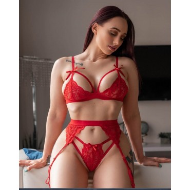 Kırmızı Dantelli Fantazi Jartiyer Takım