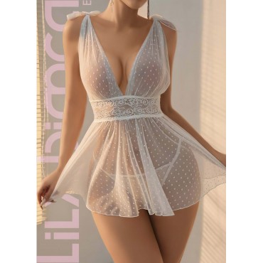 Puantiyeli Transparan Mini Fantazi Gecelik