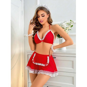 Özel Bölgesi Açık Kırmızı Sexy Fantezi Özel Gece Kostümü