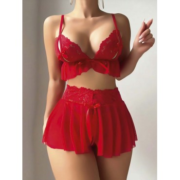 Dantel Bralet Mini Etekli Jartiyerli Ayak Dantelli Fantezi Takım