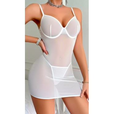Beyaz Tül Transparan Fantezi Gecelik Takım 147..